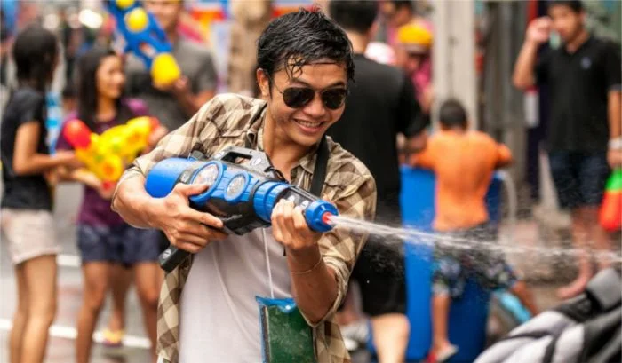 Сонгкран, тайский Новый год, отмечается водяными битвами по всей стране. Люди выходят на улицы с водяными пистолетами и ведрами, чтобы обливаться водой, что символизирует очищение и начало нового года.