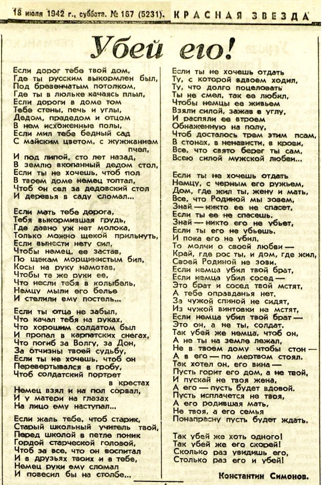 Стихотворение Константина Симонова Убей его (Если дорог тебе твой дом) еще не вышло, но кажется, оно уже звучало где-то глубоко в сознании 25-летней девушки...