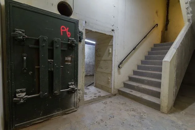 Его оборудовали в 30-х годах, когда достраивали здание. Ничего особо примечательного (кроме расположения в борделе, конечно) про это бомбоубежище неизвестно, но архитектор, который его спроектировал, был так горд тем, что получилось, что заказал 5000 коробков спичек, посвященных этой задумке. Увы, на просторах интернета ни одной картинки с таким коробком мне обнаружить не удалось.