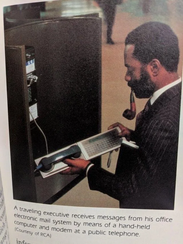 6. Отправка электронного письма с помощью акустического модема в таксофоне, начало 1980-х годов