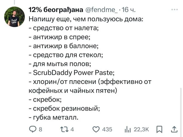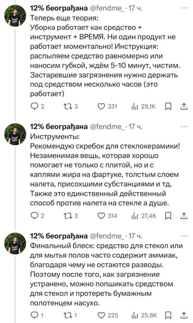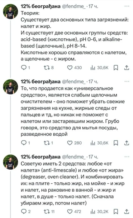 «Универсальности не существует»: парень создал гайд по моющим средствам для уборки