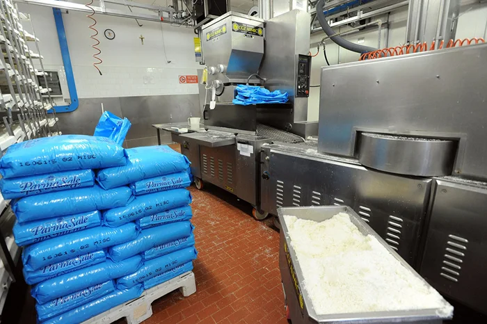 Установка, которая покрывает солью свежее мясо. Соль — это единственный ингредиент для пармской ветчины. Если добавляются травы для придания ароматических нот, это уже будет другой продукт.