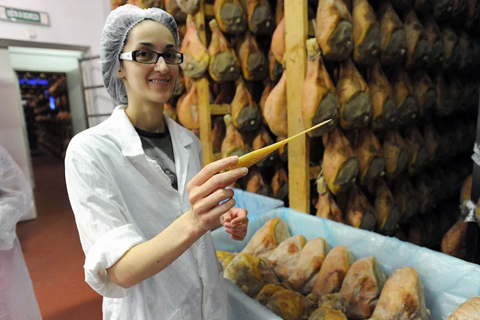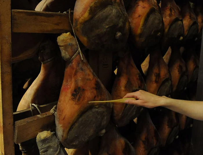Свиная нога протыкается в пяти определенных точках, и по запаху, остающемуся на палочках, инспектор определяет, может ли продукт называться пармской ветчиной.