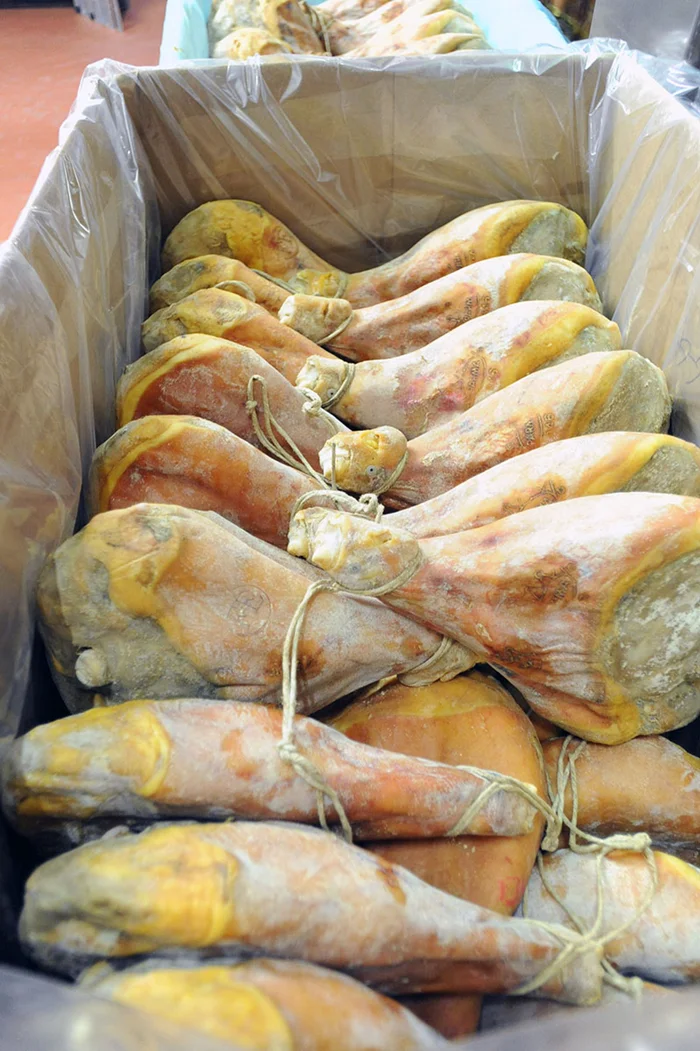 Каждая свиная нога проходит контроль качества, только после этого прошутто может быть упаковано для отправки к заказчикам.