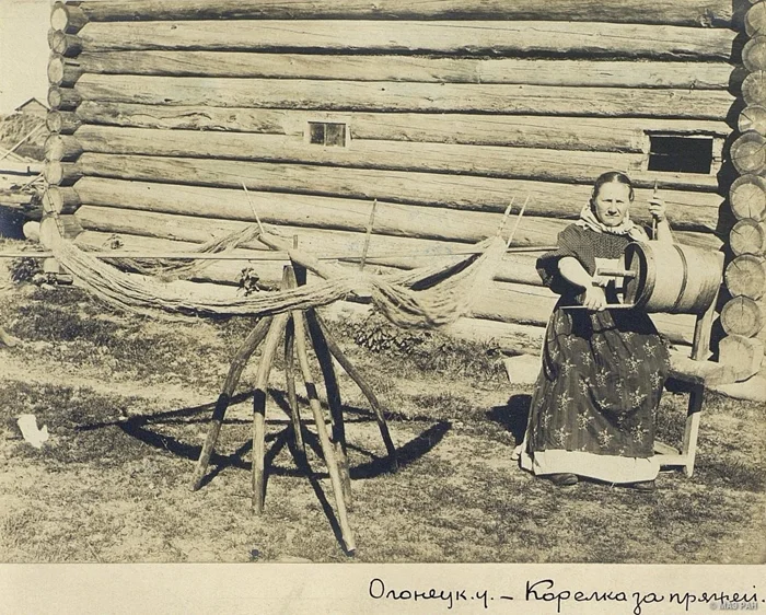 После того, как лен трепали, его сортировали исходя из качества. Отходы производства шли на паклю, веревки, подстилки скоту. Отобранный лен вычесывали гребнями, при этом зубья каждого последующего гребня были тоньше предыдущего. Чем тоньше волокна – тем качественнее ткань. Далее лен взбивали и пушили, получали кудель. Из нее скручивали нить, которую наматывали на веретено. Чем опытнее и умелее пряха, тем тоньше получалась нить. Когда-то это делали вручную, потом изобрели прялки.