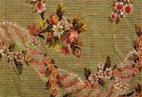 ГЛАЗЕТ — блестящая парча, с цветной шелковой основой и металлическим утком, затканная золотыми и серебряными узорами. Название происходит от от французского слова glace — глянцевый. Применялась для шитья придворных платьев (в частности — для орденских платьев Великих Княжон), мундиров, облачений священников. А еще им стали обивать роскошные гробы состоятельных людей.