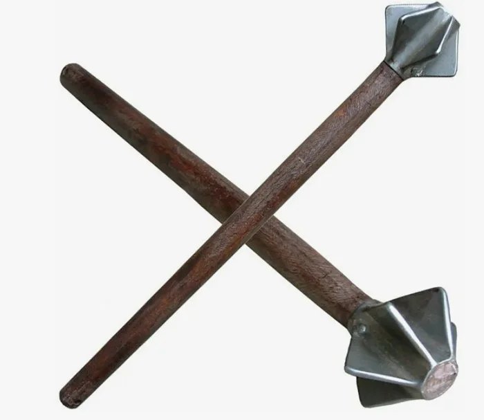 Ответом на появление латного доспеха стал шестопёр - некоторое количество пластин, наваренное вертикально на рукоятку.
