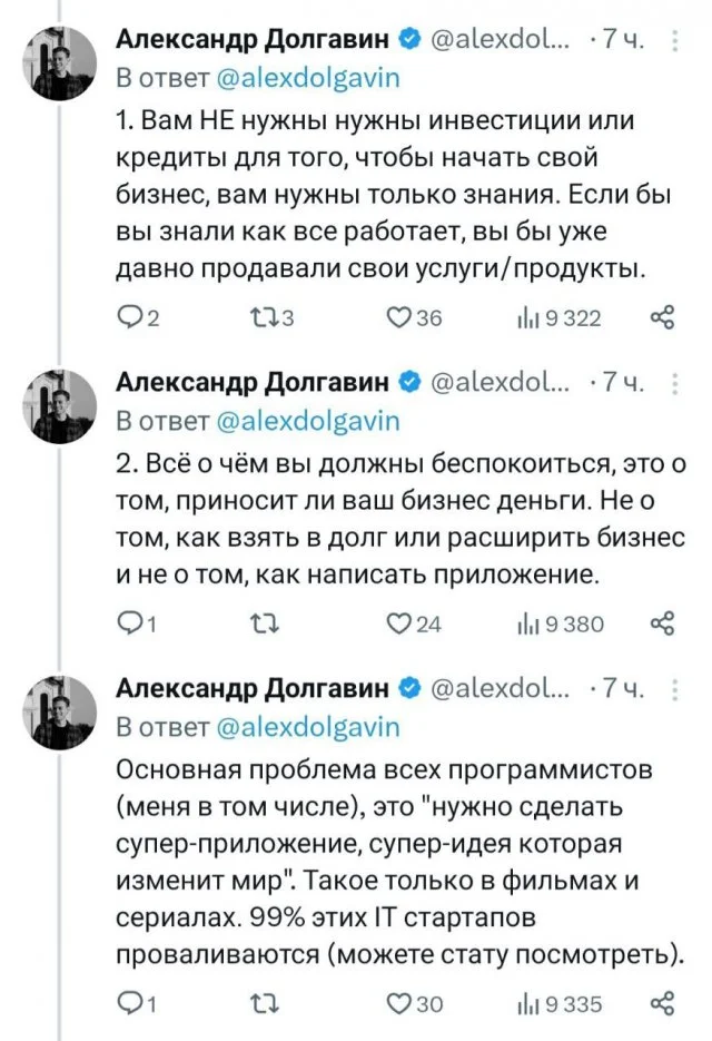 Многие хотят перестать работать на дядю и открыть свое дело. Но далеко не все достигают в этом успеха. Выпускник Гарварда рассказал, как открыть успешный бизнес в 2024 году. В своем треде он описал неочевидные ошибки стартаперов, советы по выходу из кризисных ситуаций и лайфхаки, которые помогут превратить любимое дело в прибыльное.
