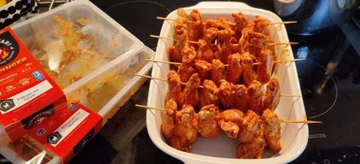 17. Чтобы приготовить больше куриных крылышек одновременно, не кладите их на противень — используйте шпажки.
