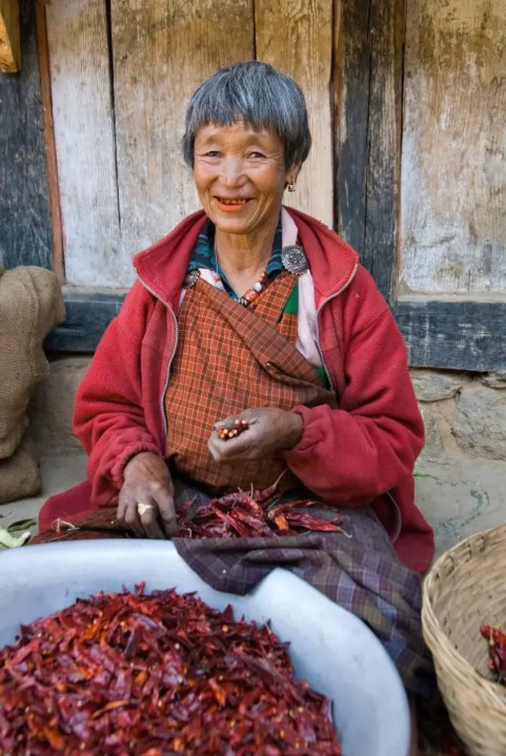 Основу национальной кухни Бутана составляет красный рис, который отличается от обычного легким ореховым привкусом. Поскольку сельскохозяйственные районы находятся на большой высоте, из круп здесь выращивают только гречиху и кукурузу. Курятину, свинину и говядину жарят, варят или тушат с добавлением большого количества приправ. Национальная кухня Бутана - это острое, три раза в день. Из национальных блюд известно Эма Датши — смесь острого перца чили и местного сыра, куда добавляют зеленую фасоль, папоротник, грибы или картофель.