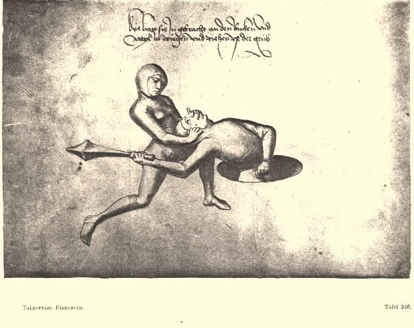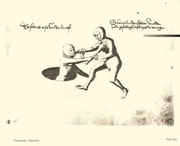 Хотя, вполне возможно, Тальхоффер включал описание поединков с разнополыми соперниками в свой трактат не только для полноты картины, но и для того, чтобы дать женщинам практические советы по самообороне. Ведь в те неспокойные времена умение постоять за себя было важно не только для мужчин, но и для женщин.