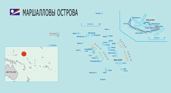 Как уже догадались читатели, островное государство состоит из одних только маленьких атоллов. Всего под юрисдикцией Маршалловых Островов находится 34 атолла. Все они пологие, их максимальная высота не превышает 10 метров.