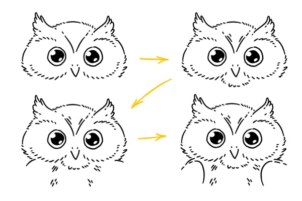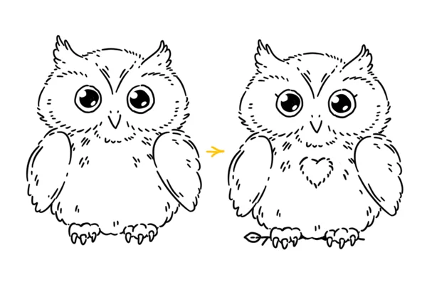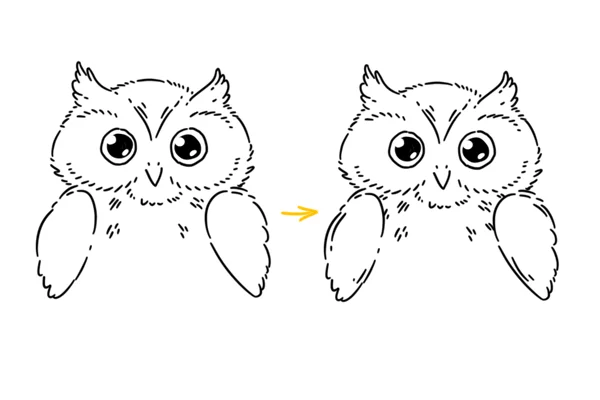 16. Добавляем пальчики с когтями (каждый пальчик лучше не рисовать - они должны смотреться вместе как слипшиеся пельмешки, иначе будет слишком детализированно и зритель будет отвлекаться от мордочки совы)