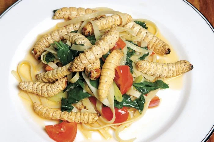Это блюдо популярно в центральной Австралии. Оно готовится из белых личинок мотылька, которые живут в древесной коре и питаются ею.