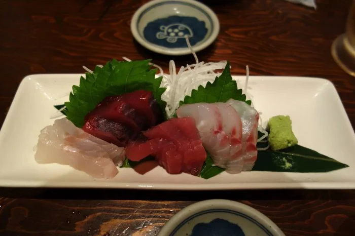 Национальное японское блюдо. Представляет собой кусочки свежей сырой рыбы или мяса, нарезанные тонкими ломтиками. Часто употребляется с соевым соусом.