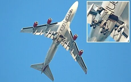 Самолет заходил на посадку и пилоты выпустили шасси. Но вдруг они обнаружили, что стойка под правым крылом не зафиксировалась в замке. Экипаж запросил визуальный осмотр с диспетчерской башни аэропорта. Когда самолет пролетал поблизости диспетчеры смогли разглядеть правую стойку и подтвердили проблему.