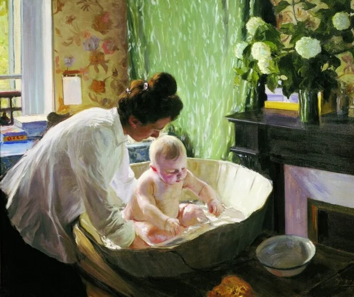 После рождения сына Кирилла Борис увековечил этот момент на картине "Утро".