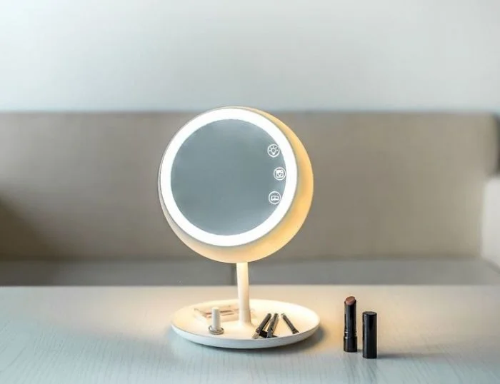 На самом деле у этого гаджета 4 функции: его можно использовать как лампу для чтения, косметическое зеркало, кольцевую лампу для селфи и лоток для хранения.