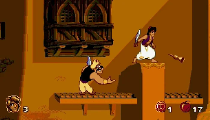 Но в отличие от первой упомянутой мной игры, данный порт получился не самым качественным. И речь тут идет вовсе не про графику или цветность. Портирование игры сопровождалось различными "косяками". Так, например, мы не могли нормально швыряться яблоками во время прыжка, а получить удар от врага мы могли даже если мы будем находиться в полуметре от цели.