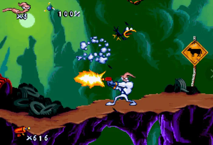 Естественно, я не мог не вспомнить и про игру "Червяк Джим", о которой многие узнали благодаря приставке "Sega mega drive 2". На "Dendy" же данной игры не было...по крайней мере официально. Зато граждане пираты сделали порт, перенеся игру на 8-битную платформу.