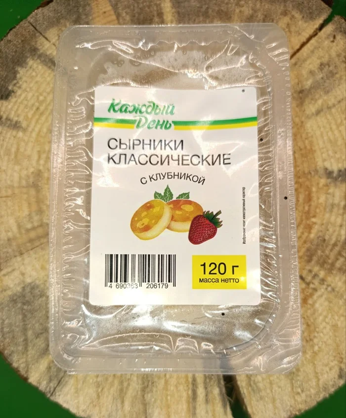 Вот здесь всё очень неплохо, если не считать странного повидла внутри, которое на вкус не совсем понятно из чего. Но сами сырники нежные и мягкие, творог вполне приличный, на удивление хороший десерт за свои деньги. Сладко, вкусно и недорого.