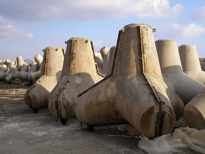 Изготавливают тетраподы из высококачественного гидротехнического бетона, который отличается устойчивостью к водной среде и температурным перепадам.