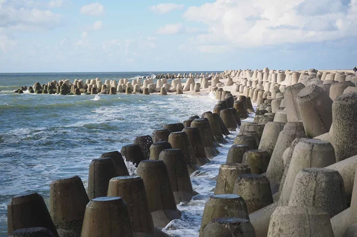 Однако помимо тетраподов морское побережье укрепляется и другими конструкциями.