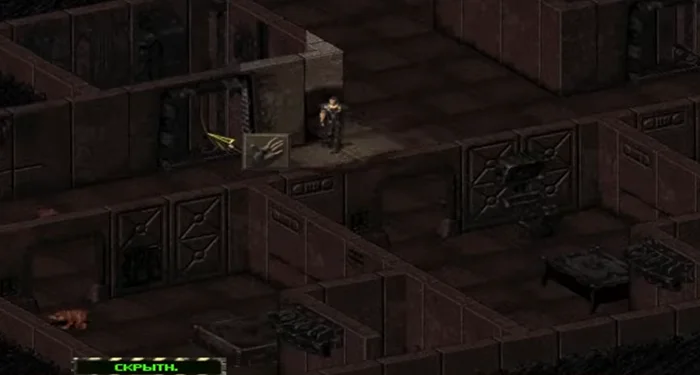 Как только мы оказываемся за пределами убежища, бежим к выходу на поверхность, избегая столкновения с крысами. Для того, чтобы не ввязываться с ними в бой и не затрачивать лишнее время (ну мы же пацифисты), врубаем режим скрытности и спокойно проходим мимо них, когда они нас не видят.