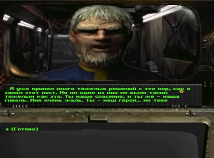 Дальше дед уходит, а наш герой с поникшей головой уходит в пустоши, где основывает деревушку Аройо. Впрочем, это уже другая история, о которой речь пойдет в одной из следующих статей.