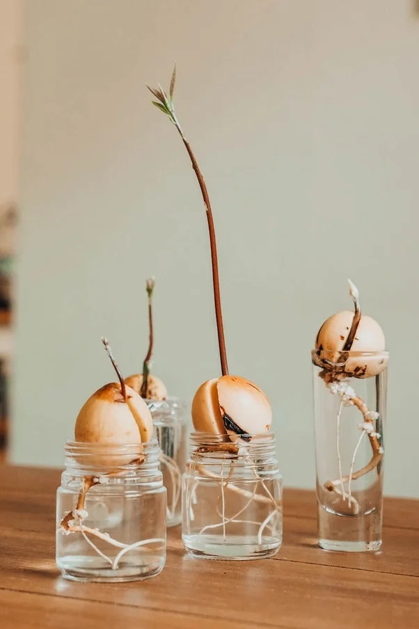 Проткнуть зубочистками. Популярный метод, который позволяет подвесить косточку в воде так, чтобы она получала достаточно влаги, но не тонула.