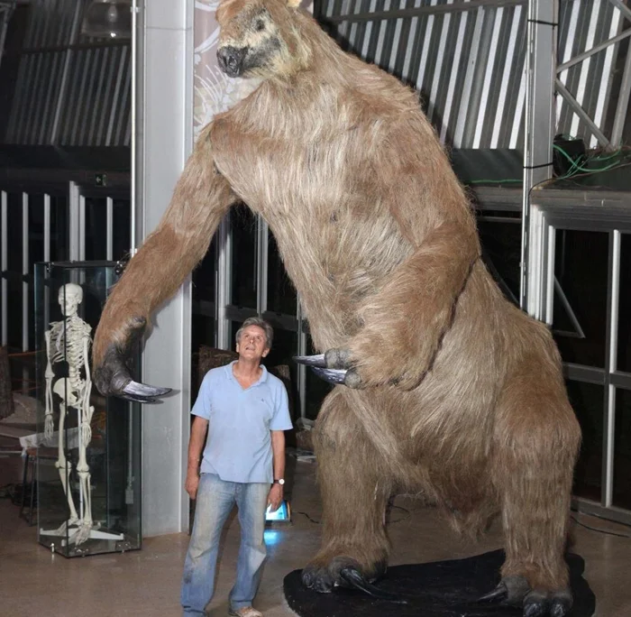 Реконструкция гигантского ленивца и сравнение его с обычным человеком