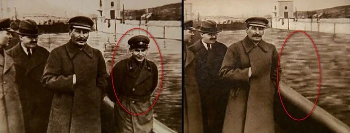 Фотошоп по-советски. Когда Ежов попал в опалу, его убрали с этой знаменитой фотографии