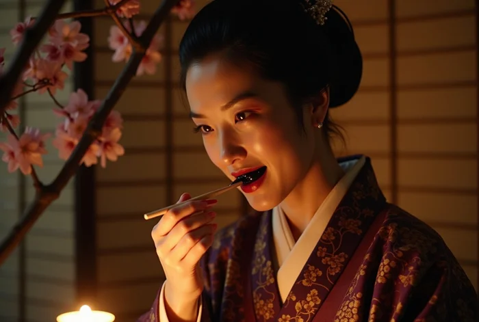 Процедура называлась охагуро. Японки окрашивали зубы специальным лаком из смеси железа, уксуса и орехового экстракта. Парадокс, но кроме соответствия странным понятиям о красоте, окраска зубов оказывала эффект на здоровье. Причем - позитивный!