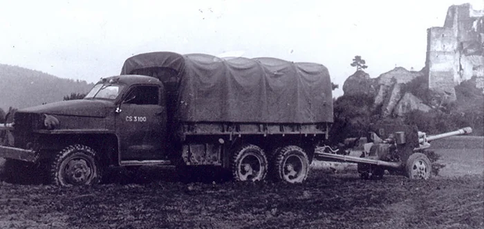Грузовик «Студебеккер» перевозит пушку ЗиС-3