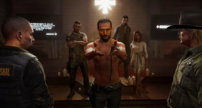 События игры "Far cry 5" начинают активно разворачиваться после того как мы арестовываем предводителя местной секты (главного антагониста) Иосифа Сида. Если это сделать, то во время его сопровождения на наш вертолет нападут его последователи, в результате чего воздушный транспорт упадет, а мы будем вынуждены скрываться от толпы недругов.