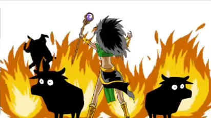 Также, в отличие от оригинала, здесь мы могли выбрать одного из трех персонажей. Причем, если один из них погибал, то его сбрасывали со скалы, и в дело вступал следующий персонаж.