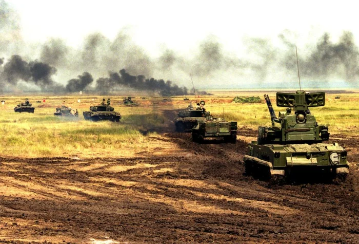 Комплекс зенитной ракетно-пушечной системы 2К22 "Тунгуска" предназначен для обеспечения защиты воздушного пространства мотострелковых и танковых подразделений как в условиях маневра, так и в стационарном режиме. Он эффективно нацелен на уничтожение низколетящих воздушных объектов, включая зависшие вертолеты. Данная система была введена в эксплуатацию в середине 1980-х годов. Боевая машина оборудована башенной установкой, в состав которой входят две 30-мм автоматические пушки с парными стволами и восемь пусковых установок для зенитных управляемых ракет.