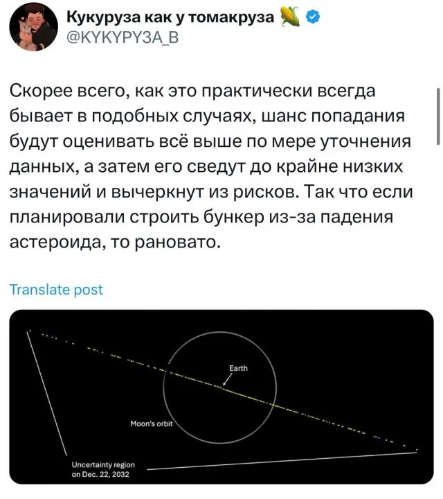 Астероид YR4 угрожает Земле? Разбираем, есть ли повод для паники