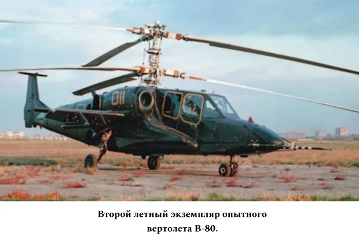 Первый полет новая машина совершила 17 июня 1982 года, а 2 августа 1983 года в воздух поднялся второй опытный экземпляр В-80. Когда камовцы представили свой вертолет военным, они были поражены. Одноместная машина соосной схемы с вытянутым фюзеляжем и интеллектуальной системой управления оружием была для них полной неожиданностью! Однако после первых демонстрационных полетов и изучения расчетов стало ясно, что новинка не просто имеет право на существование, но и может оказаться более практичной и выгодной для армии, чем разработанный Ми-28 классической схемы. В течение двух лет проводились сравнительные испытания вертолетов, и мнения армейских экспертов все больше склонялись в пользу В-80. В сентябре 1985 года комиссия Министерства обороны приняла решение выбрать машину ОКБ имени Камова в качестве серийного ударного вертолета.