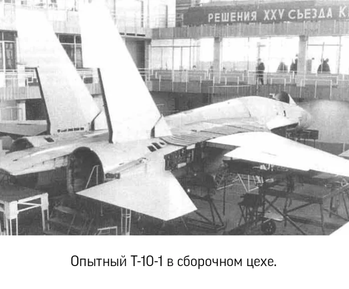 В процессе проектирования возникла интересная задача: в СССР расчетной полетной массой считалась масса самолета с 80% заправкой, однако по емкости баков Т-10 оказался ближе к фронтовому бомбардировщику, чем к истребителю. Отказ от лишнего топлива позволил уменьшить массу, но это сказалось на боевой эффективности. Разработчики и заказчики нашли компромиссное решение, разделив требования к Т-10 на две части: с основной заправкой (около 5,5 т керосина) и с полной заправкой (приблизительно 9 т), но с уменьшением требований к максимальной эксплуатационной перегрузке. В результате Су-27 с полной заправкой имеет большую дальность полета, чем большинство истребителей с подвесными топливными баками. Эскизное проектирование завершилось в 1975 году, а в 1976-м было принято постановление Совета министров СССР о разработке Су-27. С февраля 1976 года главным конструктором стал М.П. Симонов. Первый полет на Т-10-1 состоялся 20 мая 1977 года под управлением В.С. Ильюшина. В 1978 году в Комсомольске-на-Амуре началась сборка самолетов установочной партии, но выяснилось, что, хотя самолет мог быть запущен в серийное производство, он не соответствовал техническому заданию и проигрывал F-15. Поэтому, по настоянию М.П. Симонова, этот вариант истребителя не был запущен в серийное производство.