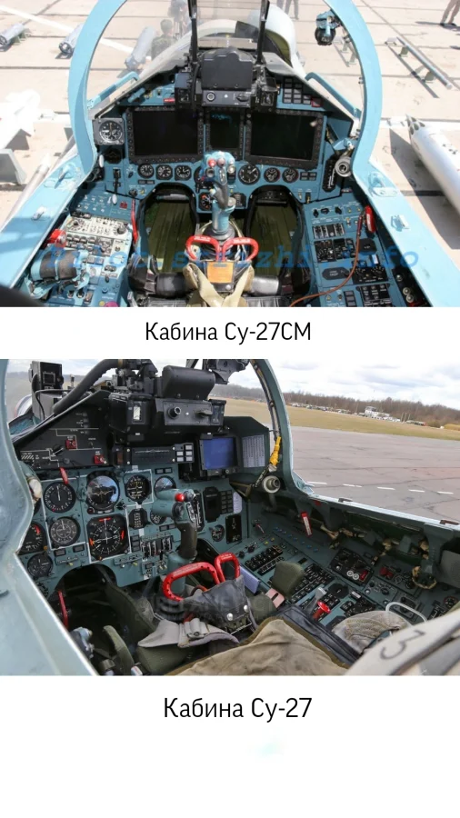 Приборное оборудование выполнено по принципу «стеклянной кабины». Сверхманевренный многофункциональный истребитель Су-35 является глубокой модернизацией Су-27 и относится к поколению «4++». Его проектирование начато в 2002 году. На Су-35 применены технологии истребителя 5-го поколения, значительно улучшено БРЭО. Силовая установка состоит из двух ТРДДФ АЛ-41 с увеличенной тягой и поворотными соплами в двух плоскостях. Истребитель оснащен РЛС с пассивной фазированной антенной решеткой Н035 «Ирбис». Всего построено 12 Су-27М/Су-35, часть из которых была передана пилотажной группе «Русские Витязи». Су-27СМ в 2004-2009 годах для ВВС РФ прошли ремонт и модернизацию, в результате чего 48 истребителей Су-27 были преобразованы в вариант Су-27СМ.