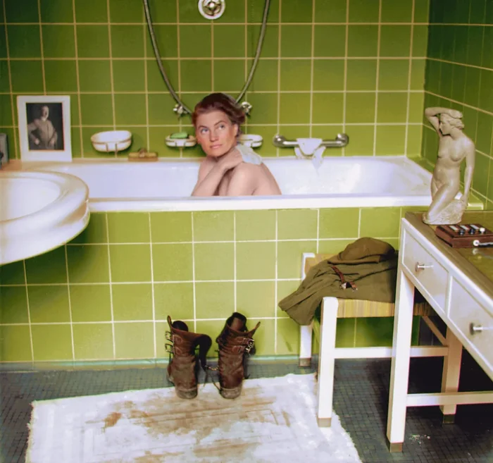 В истории существуют моменты, которые передают больше, чем множество репортажей. Один из таких моментов – фотография модели и военного фотокорреспондента Ли Миллер в ванной комнате Адольфа Гитлера. Она с расслабленным видом принимает ванну на фоне зелёной плитки, а рядом висит портрет хозяина квартиры, в то время как у входа стоят грязные армейские ботинки.