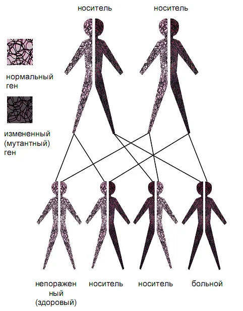 Ген ахроматопсии – рецессивный. Что это означает? У нас у всех пары генов – один от матери, другой от отца. Чтобы проявилась рецессивная «болезнь», необходимо получить «поврежденную» копию гена от обоих родителей. Если у человека есть только одна такая копия (как у короля-основателя), а вторая копия нормальная, то он будет здоров, но останется носителем. Тем не менее, он может передать «поврежденный» ген своим детям.