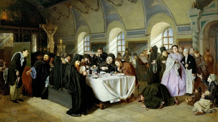 Василий Перов, "Монастырская трапеза".