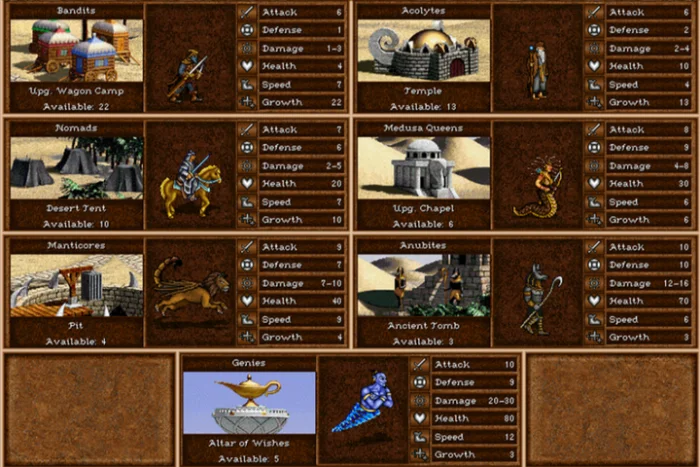 Фракция Дервиша представляет собой своеобразную мусульманскую фракцию, расположенную в пустыне. Она включает как новые юниты, так и известные существа, ранее являвшиеся нейтральными. Давайте рассмотрим их подробнее.
