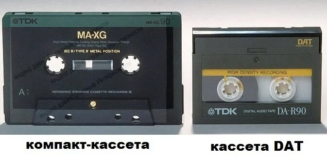 Это был цифровой стандарт записи на магнитную ленту шириной 3,81мм. Лентопротяжный механизм был аналогичен видеомагнитофонам VHS. Несмотря на очень высокое качество, формат DAT так и остался уделом профессионалов. Среди любителей не получил широкого распространения.