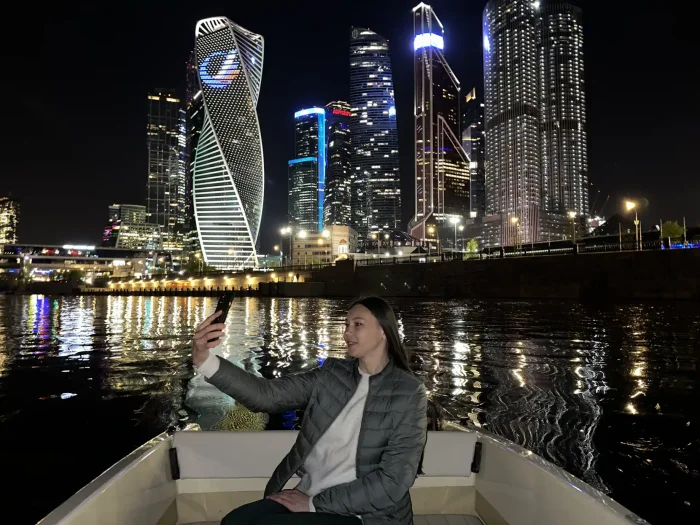 Стартуйте из яхт-клуба «Ривер-Порт» на Нагатинской набережной — и уже через минуту Кремль, Зарядье и Храм Христа Спасителя выстраиваются в живую открытку. За очередным поворотом выныривает 98-метровый Пётр I, а ещё через пару минут вспыхивает цельностеклянный гребень Moscow City. «Шустрый» берёт четверых, но идеальная посадка — трое: так сохраняется баланс, а скорость держится на 22–25 узлах. Час-полтора такого плавания дарят десятки эффектных кадров и редкое чувство, что столицу вы взяли напрокат вместе с катером.