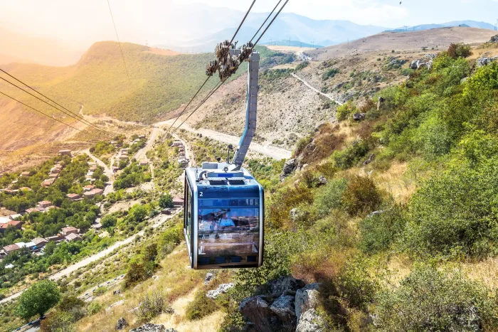 Финал путешествия — Татев, добраться до которого можно по канатной дороге «Крылья Татева». Вас ждёт полёт над ущельем Воротан — 12 минут в воздухе и незабываемый вид на горы, леса и древний монастырь, который когда-то был научным центром всего региона.