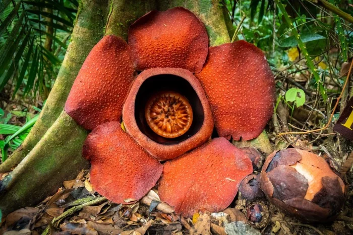 Этот гигантский цветок до 1 метра в диаметре в национальном парке Као Сок Таиланда пахнет… гниющей плотью. Неудивительно, что его называют «трупной лилией». Аромат привлекает мух, которые опыляют растение. Самый крупный вид, Rafflesia arnoldii, — символ провинции Сураттхани.