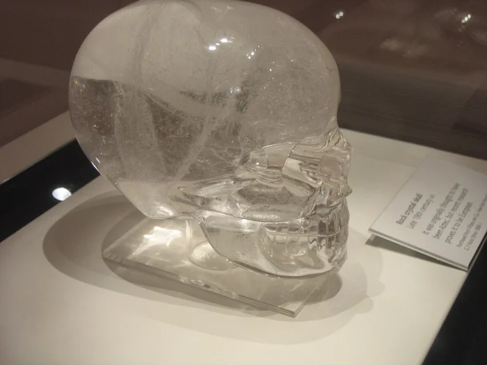 Собственно, человеческие черепа, изготовленные из цельного куска горного хрусталя. Информация о них стала появляться во второй половине 19 века. На сегодняшний день известно четыре черепа, находящиеся в музеях, возможно, есть и другие, в частных коллекциях. Три из известных якобы найдены в джунглях Гватемалы французским антикваром Эженом Бобаном, четвертый якобы найден авантюристом и писателем Митчеллом-Хеджесом.